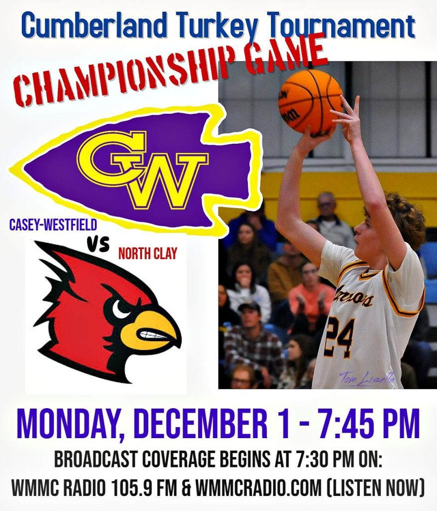 Due to the weather, Cumberland Turkey Tournament games scheduled for Saturday, November 29th were postponed to Monday, December 1, 2025. Listen LIVE to the Championship Game on WMMC Radio 105.9 FM or LISTEN ONLINE. Coverage begins at 7:30pm, tipoff at 7:45pm.