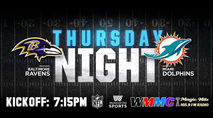 This week WMMC will broadcast Baltimore Ravens at Miami Dolphins on Thursday and Seattle Seahawks at Washington Commanders on Sunday! Tune in or listen online for great NFL Week 9 coverage on WMMC 105.9 FM!